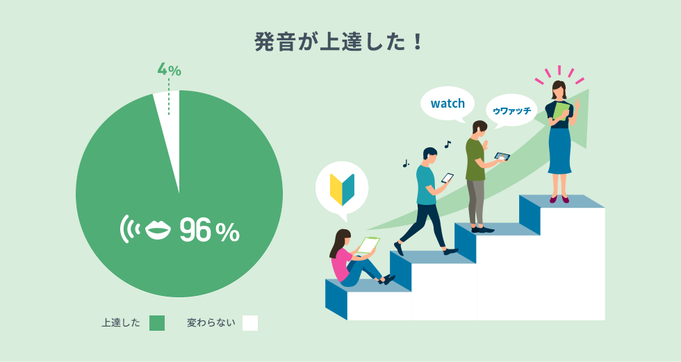 - ●人目を気にせず、すきま時間に気軽に発音の練習ができる点が良かったです。