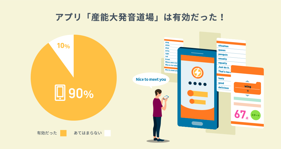 - ●授業でポイントを学び、それをアプリ「産能大発音道場」(※)で繰り返し練習することで、自信がつきました。