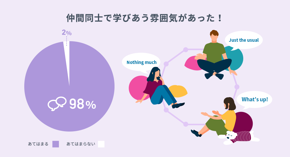 - ●クラスのメンバーや先生と、たくさんコミュニケーションをとることができて楽しかったです。