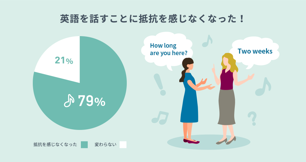 - ●以前は英語で表現することに恥ずかしさを感じていましたが、楽しめるようになりました。