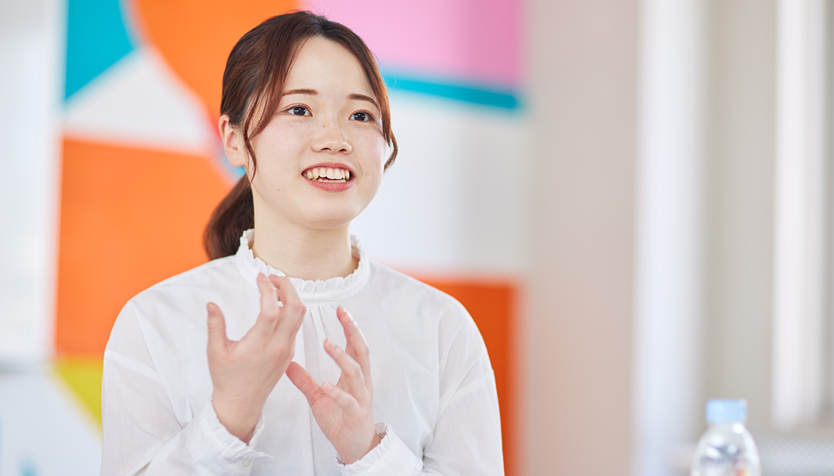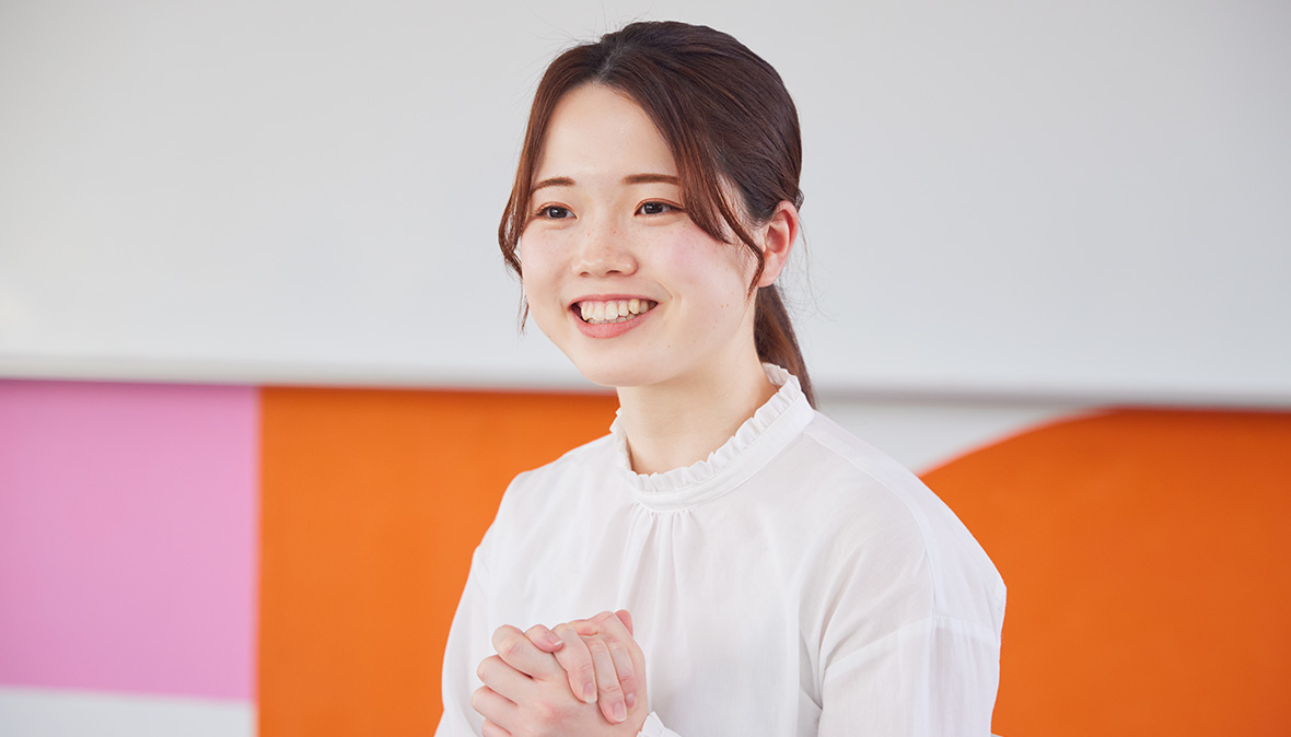 高校時代、ウエディングプランナーになりたいという目標から、業界の知識やさまざまな視点でのサービスマーケティングを学びたいと思い、SANNOへ入学。入学後、ゼミのプロジェクト活動を通したSDGsについての学びが「環境・社会・顧客の全てに優しいサービス」について考えるきっかけとなった。結婚式場でのアルバイトは、そうしたサービスを自ら考え、実施する機会としている。将来の目標へ向け企画・運営に必要な能力の向上を目指し、オープンキャンパススタッフをはじめ、日々の活動に全力を尽くしている。