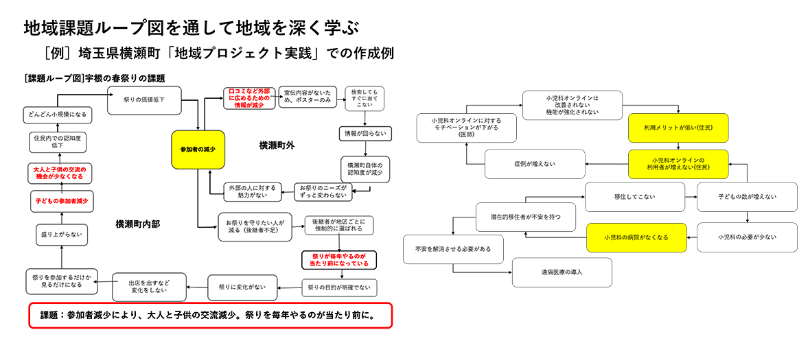 ▲ユニット授業で学生たちがまとめた地域課題ループ図