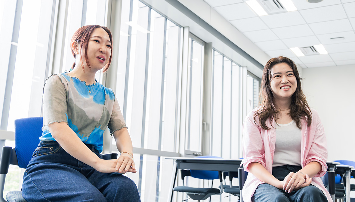 大学での学びはその後の人生にも大きな影響を与えるものです。卒業後の就職へのヒントを得たり、人生におけるライフワークを見つけたり、かけがえのない生涯の仲間と出会えたり。産業能率大学の「自由が丘イベントコラボレーション(以下、イベコラ)」もまた“人生を変える授業”として、多くの学生が履修してきた特色授業です。自由が丘の街と人、在学生、卒業生も含めたコミュニティの中で、どのように学び、何が人生を変えたのか。今回は卒業生である倉持有沙さん、川島飛鳥さんにお話を聞きました。
