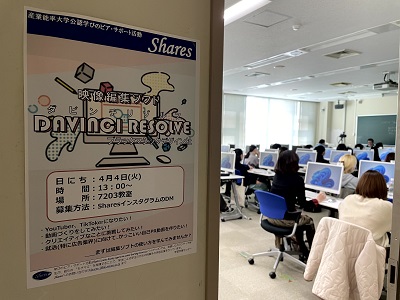 今回、都留先生のご紹介により、Blackmagic Design社の方に講師を務めていただき、DaVinci Resolveを用いた映像編集講座を4月4日に開催しました。講座開催にあたり、Sharesは講座の広報と受講申し込み管理などの運営のサポートを担当しました。広報の甲斐あって、学生34名と教員5名が講座を受講しました。