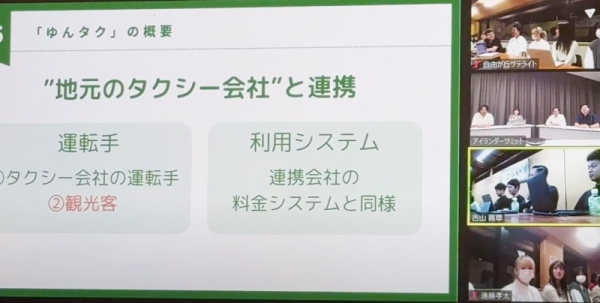 参加した学生は、経営学部の授業「石垣島‐自由が丘ブランディング」の履修生達。3チームにわかれて島の課題を調査し、市場調査やマーケティング分析の結果から導き出した解決策をサミットで提案しました。運転者不足によりタクシーが捕まらない課題を解決する「ゆんタク」や課題解決型ホームステイ「おりとりPJT」など、島の問題を若者ならではの視点で自分事化し、スモールチェンジから未来を変える提案に、石垣市役所や有識者の方から実現性など多くの意見をいただきました。また、学生からも質問を行い、予定時間を延長し議論を深めました。また、サミット参加をきっかけに横浜市のコミュニティFM「FMサルース」への学生の出演が決定。12月6日、13日、20日の同番組に1チームずつ学生が出演し、提案内容を紹介しました。