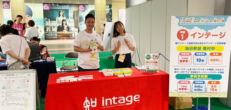 小々馬ゼミは、これまで日テレ共創ラボと共同でアルファ世代(小学生)を対象とした調査を実施しており、今回のイベントは企画段階から参加しました。当日は、株式会社 インテージホールディングスと共同で、小学生が大好きなカードゲームを使い、マーケティングリサーチを体験できるブースを設置。多くの小学生がブースを訪れました。イベントは、当初1万人程度の来場を見込んでいたところ、想定を超える2万人以上の小学生とその家族が来場しました。