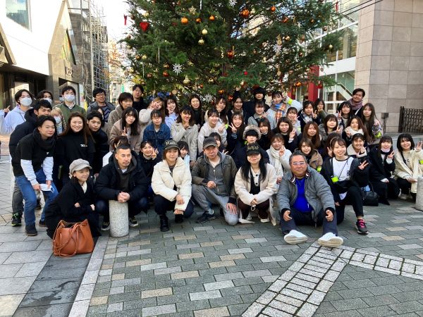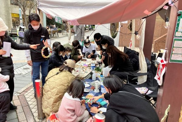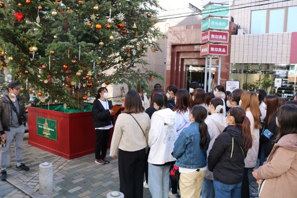 クリスマスの装飾が自由が丘の街を彩る中、学生たちは運営協力やブース出店を行い、イベントを盛り上げました。