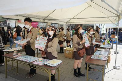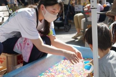 学生は「おもちゃ博&ゲームパーク in Jiyugaoka」、「SDGsパーク」、「デジタルスタンプラリー」等の様々なブースで活動し、街を訪れたお客様に丁寧に応対していました。