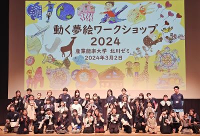 そして、ワークショップでは、担当作品の作者である子どもをサポートしながら動く夢絵作品を作り上げていく。学生が考えたとおりに作る必要はない。子どもとコミュニケーションを取りながら、どんな動きにしたいか相談して作品を完成させるようにしている。