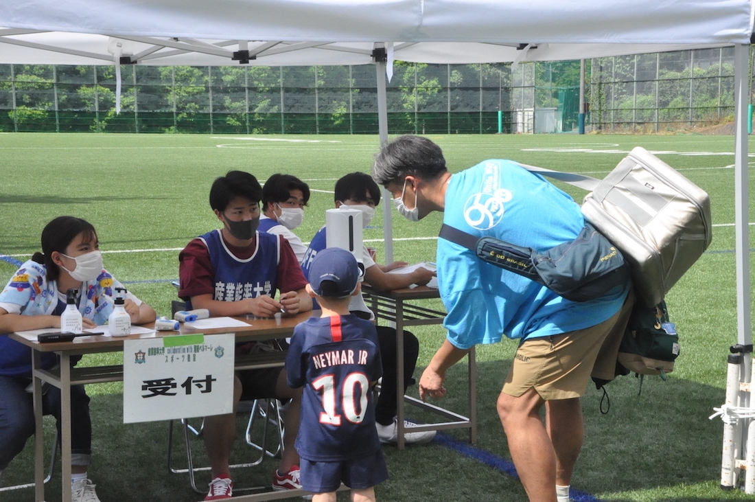 ▼スポーツ教室開始前には安全確保のため検温・消毒にご協力をいただきました。
