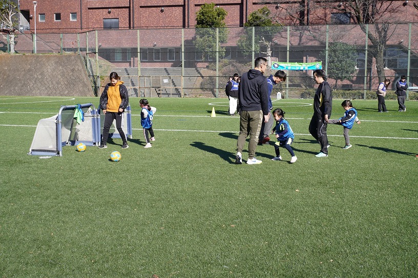 ※ 親子サッカー教室の運営は、産業能率大学情報マネジメント学部「スポーツマネジメントの実践」の授業にもなっており、学生が主体となって運営しております。当日の準備や運営、会場誘導や受付なども学生が担当しており、このブログ作成も、使用している写真の撮影も全て学生が取り組んでいます。